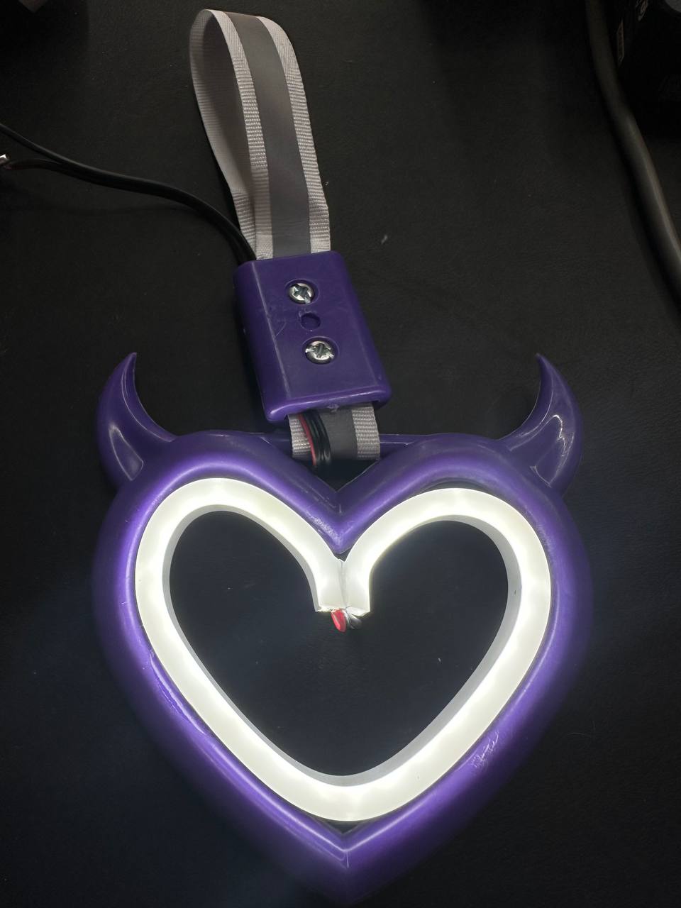 نسخه چراغ‌دار این آویز با نور LED رنگی (معمولاً قرمز، آبی، سفید یا مولتی‌کالر) همراه است که در شب جلوه‌ای بسیار خاص و چشمگیر دارد. نورپردازی آن یا به‌صورت ثابت و یا با قابلیت چشمک‌زن عرضه می‌شود و می‌تواند با باتری یا اتصال به برق خودرو تغذیه شود.