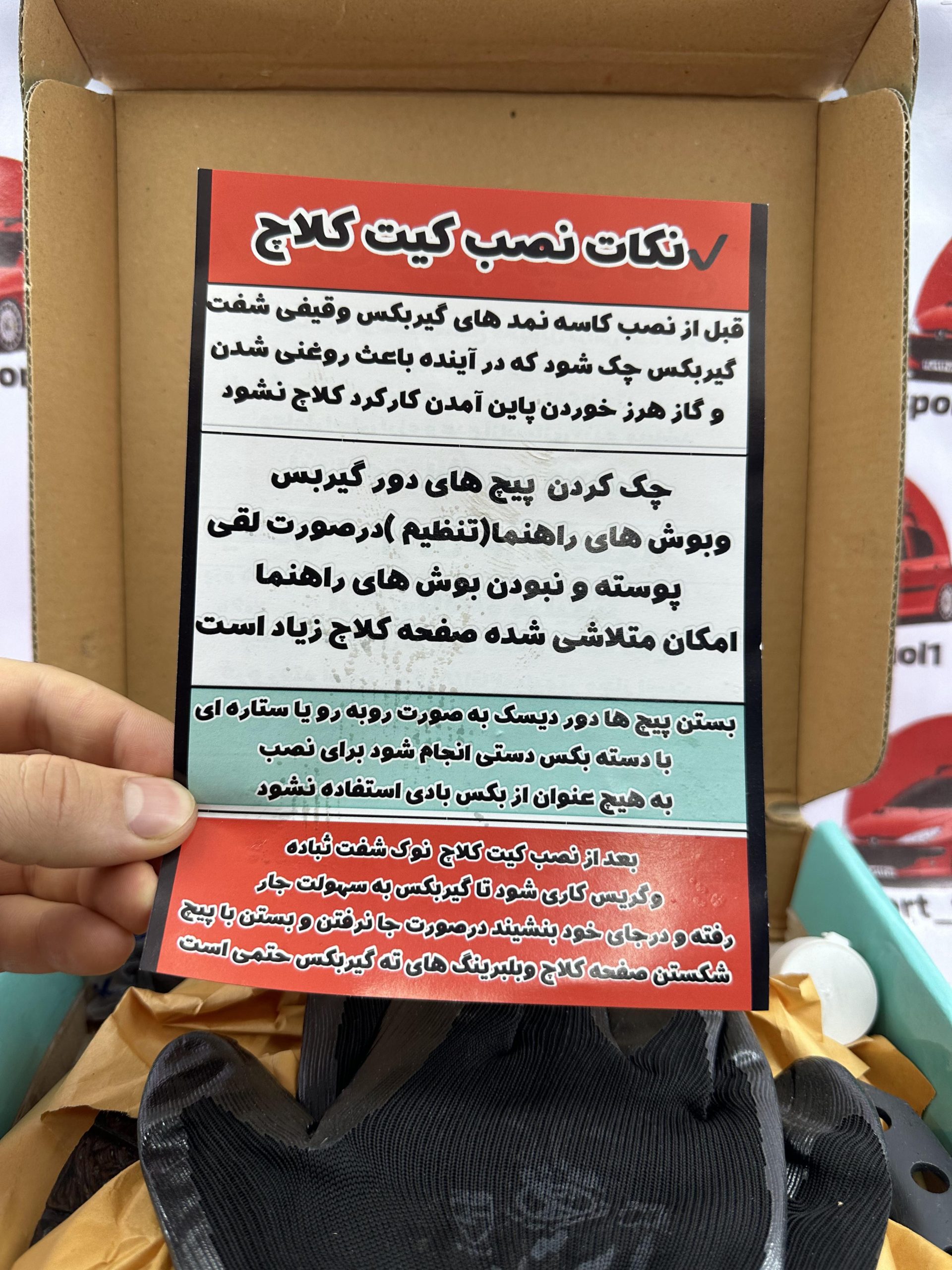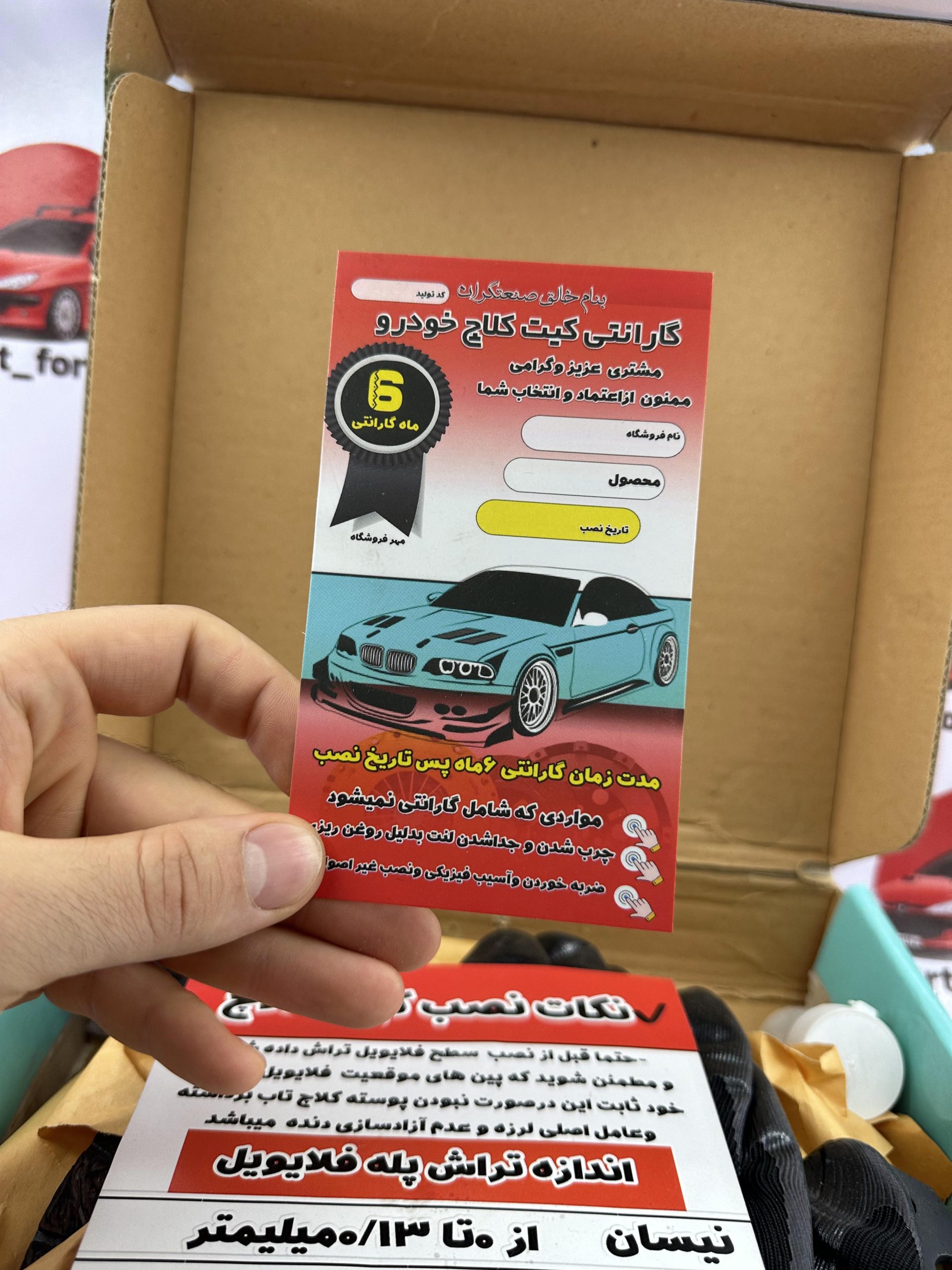 همراه با گیریس – دستکش کار (برایه اینکه تمیز نصب بشه و لنت چرب نشه) سمباده – کرات راهنمایه نصب دقیق – کارت ضمانت