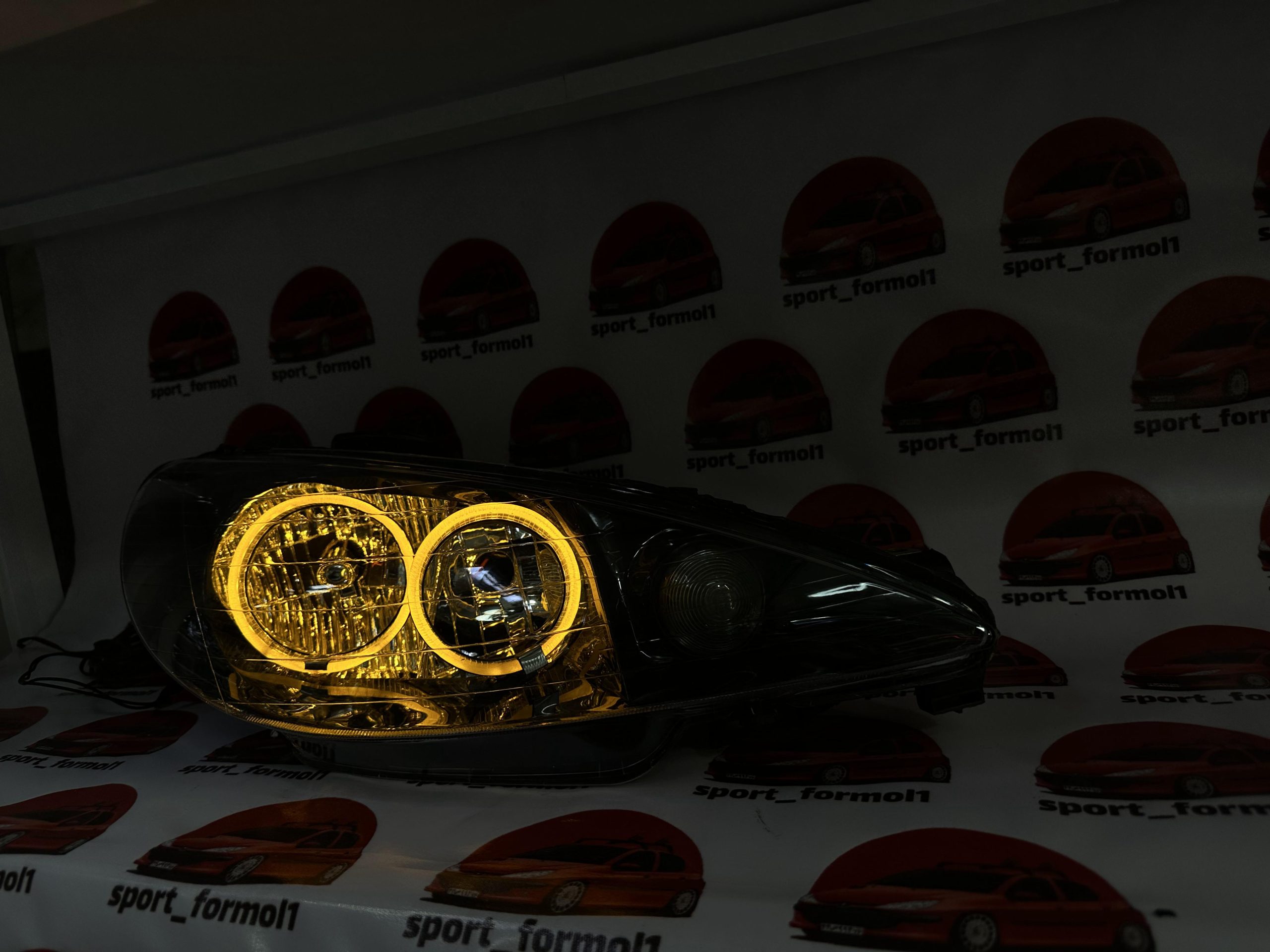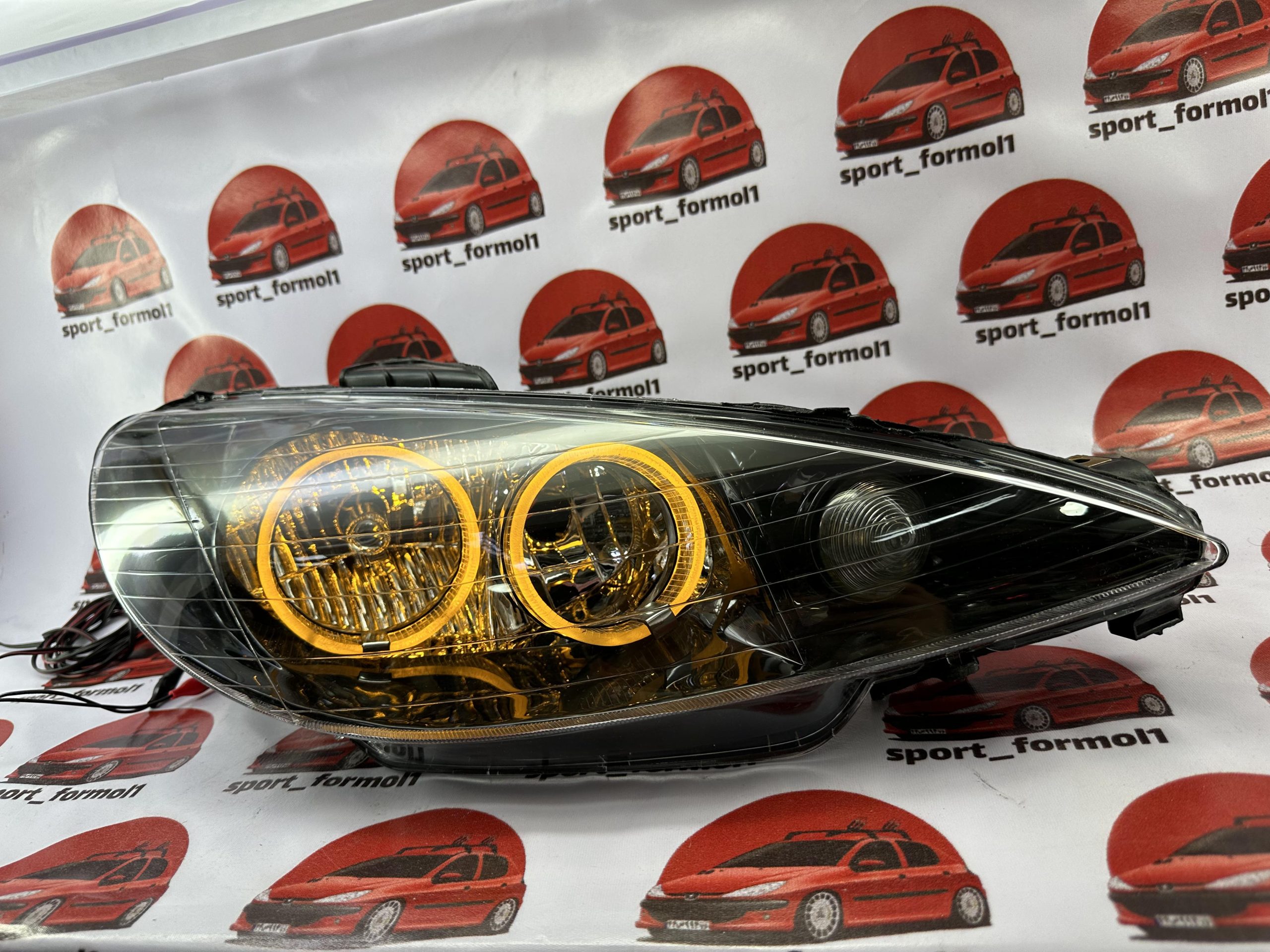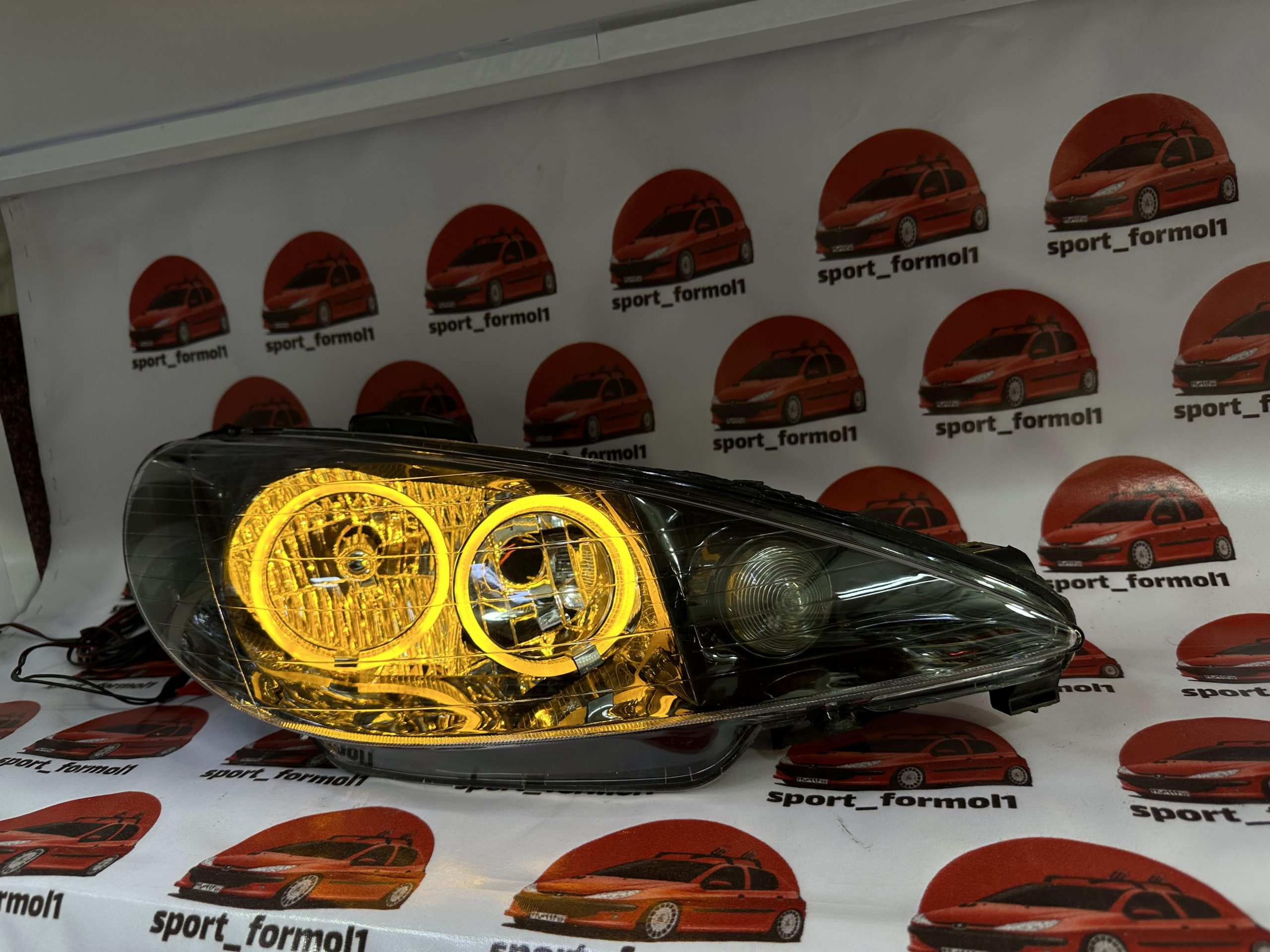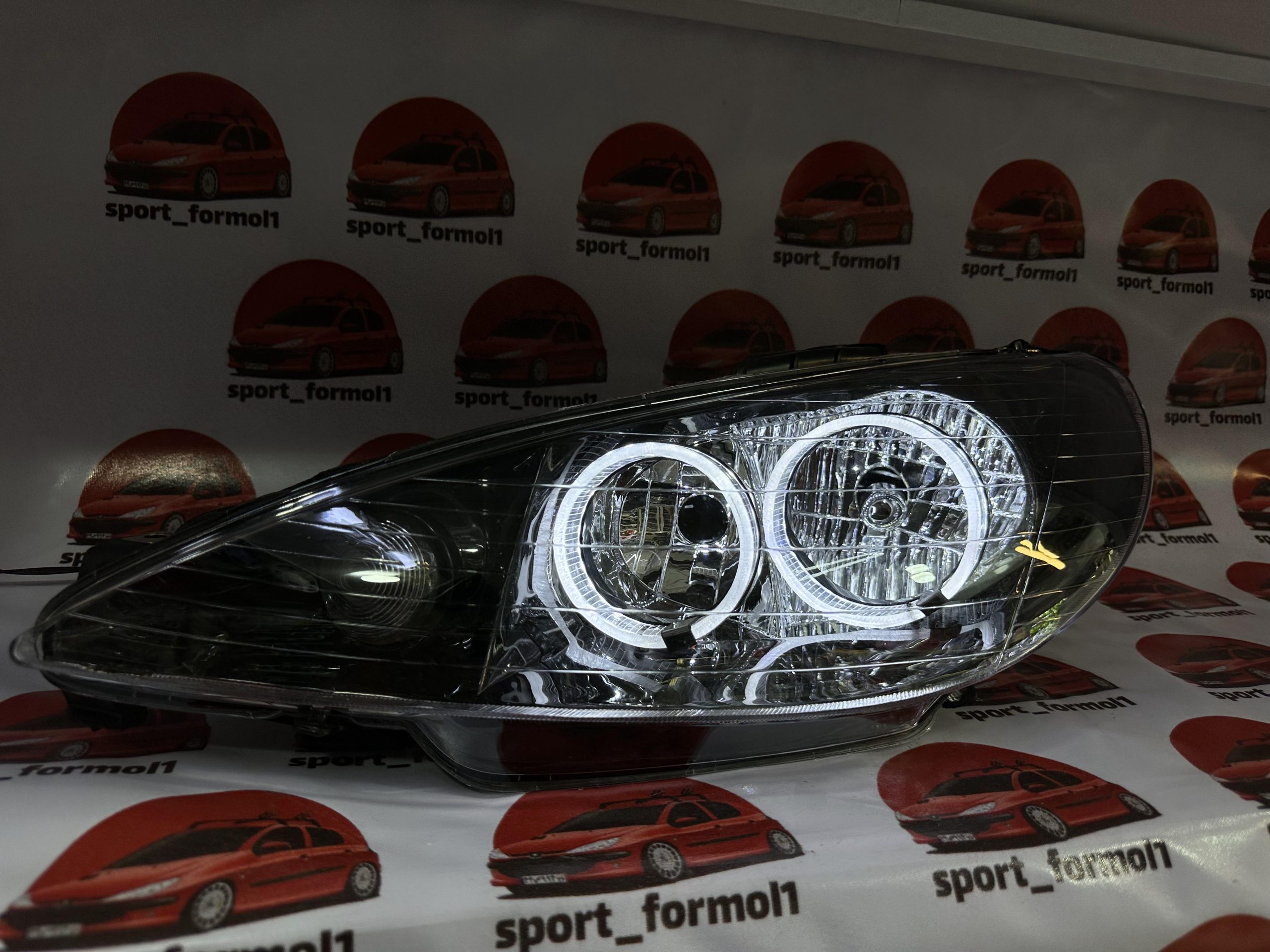 چراغ جلو اسپرت 206 دو حلقه (طرح سونار) تو مشکی 6ماه ضمانت